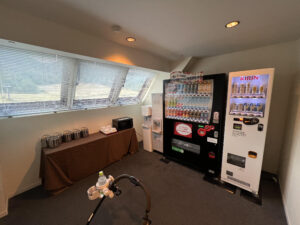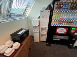 ※自動販売機の横には無料の製氷機とウォーターサーバーも完備。
