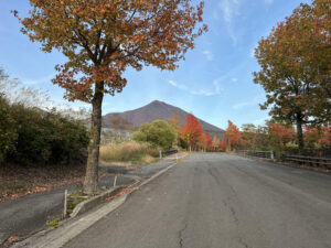 ※ホテルに向かう一本道の景色。紅葉とその奥に佇む山が絶景です。