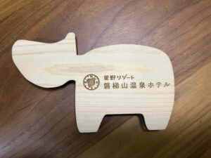 一つは「お風呂に浮かべる赤べこをかたどったヒノキ」。