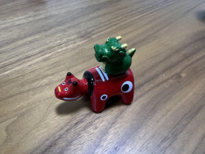 二つ目は、赤べこの小さい置物。息子が辰年生まれなので記念に購入しました。