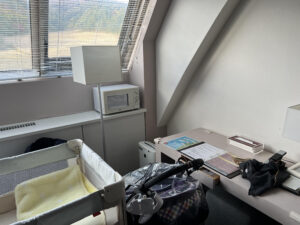 - お部屋には電子レンジも完備で、哺乳瓶の煮沸消毒も可能。