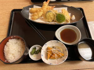 そのあと、実際にお風呂には入らず、「天ぷら定食」を注文し、夕食としました。