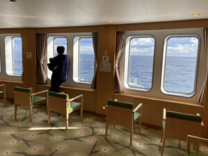 新門司→横須賀のフェリー(東京九州フェリー)は太平洋を進むことから、一時だいぶ船内が波で揺れました。